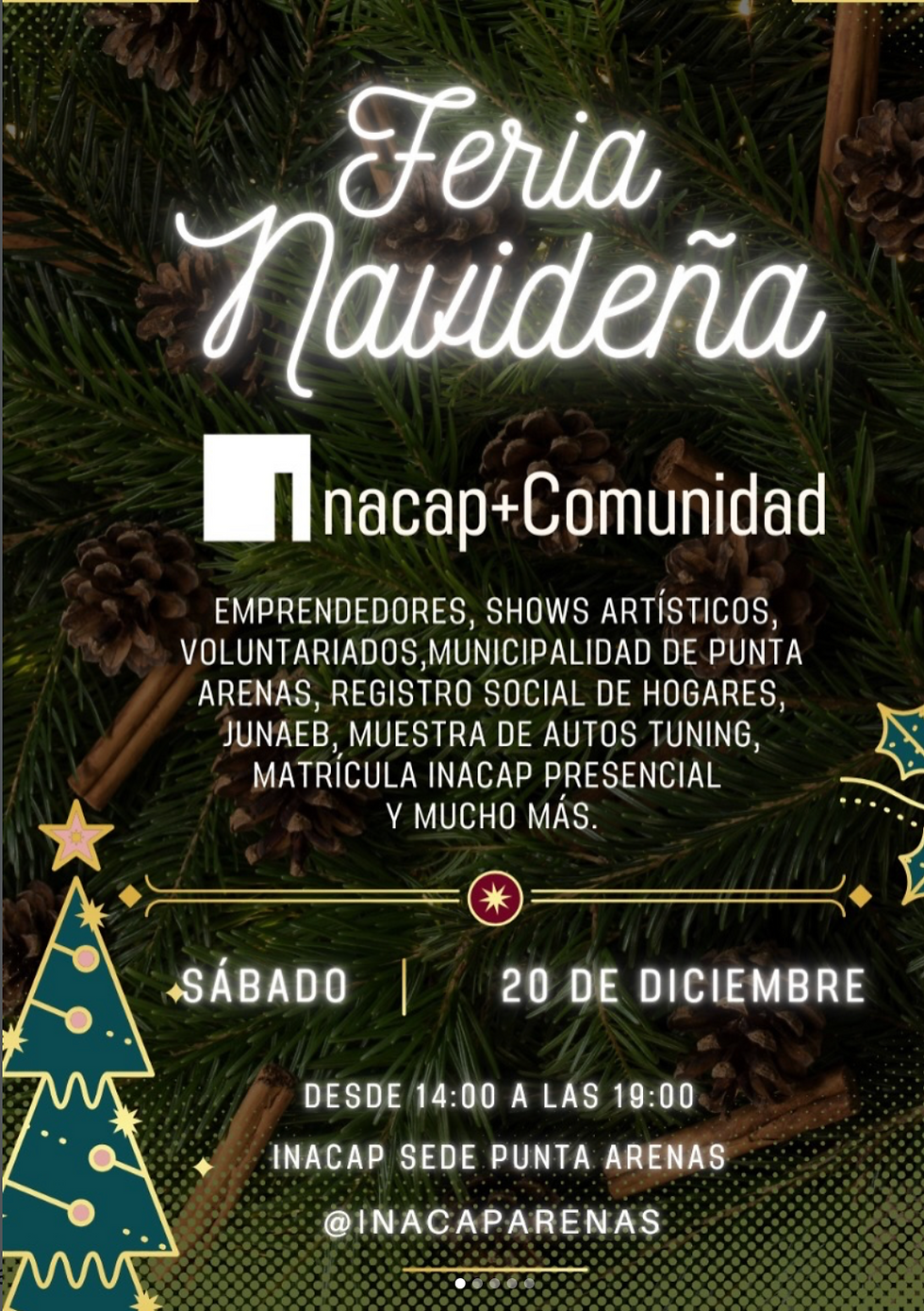 El pasado 20 de diciembre, nuestra organización vivió una jornada cargada de sentido y espíritu colaborativo. Gracias a la invitación de INACAP Sede Punta Arenas, participamos activamente en la Feria Navideña INACAP + Comunidad, un espacio diseñado para el encuentro, el apoyo al trabajo local y el fortalecimiento de las redes comunitarias.